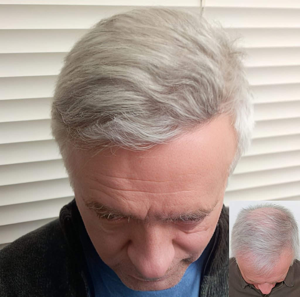 Special attention is given to graft selection and placement, particularly important with lighter or greying hair. Using advanced FUE techniques, grafts are implanted at precise angles and spacing to ensure smooth blending and consistent coverage, avoiding unnatural contrast or density.